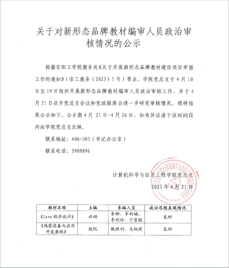 关于对新形态品牌教材编审人员政治审核情况的公示