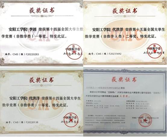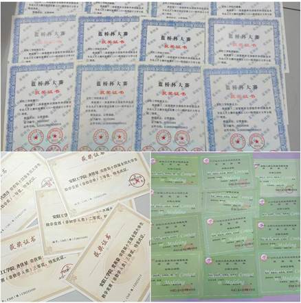 全国老员工数学竞赛(非数学类)省级证书10项;